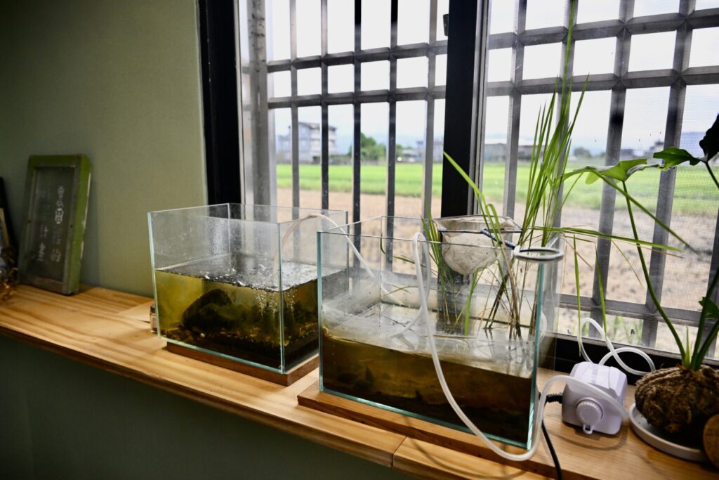 圖-工作室陳列的採集標本與水族箱,不僅是生態觀測的佐證,更是食農教育裡的田間教材。